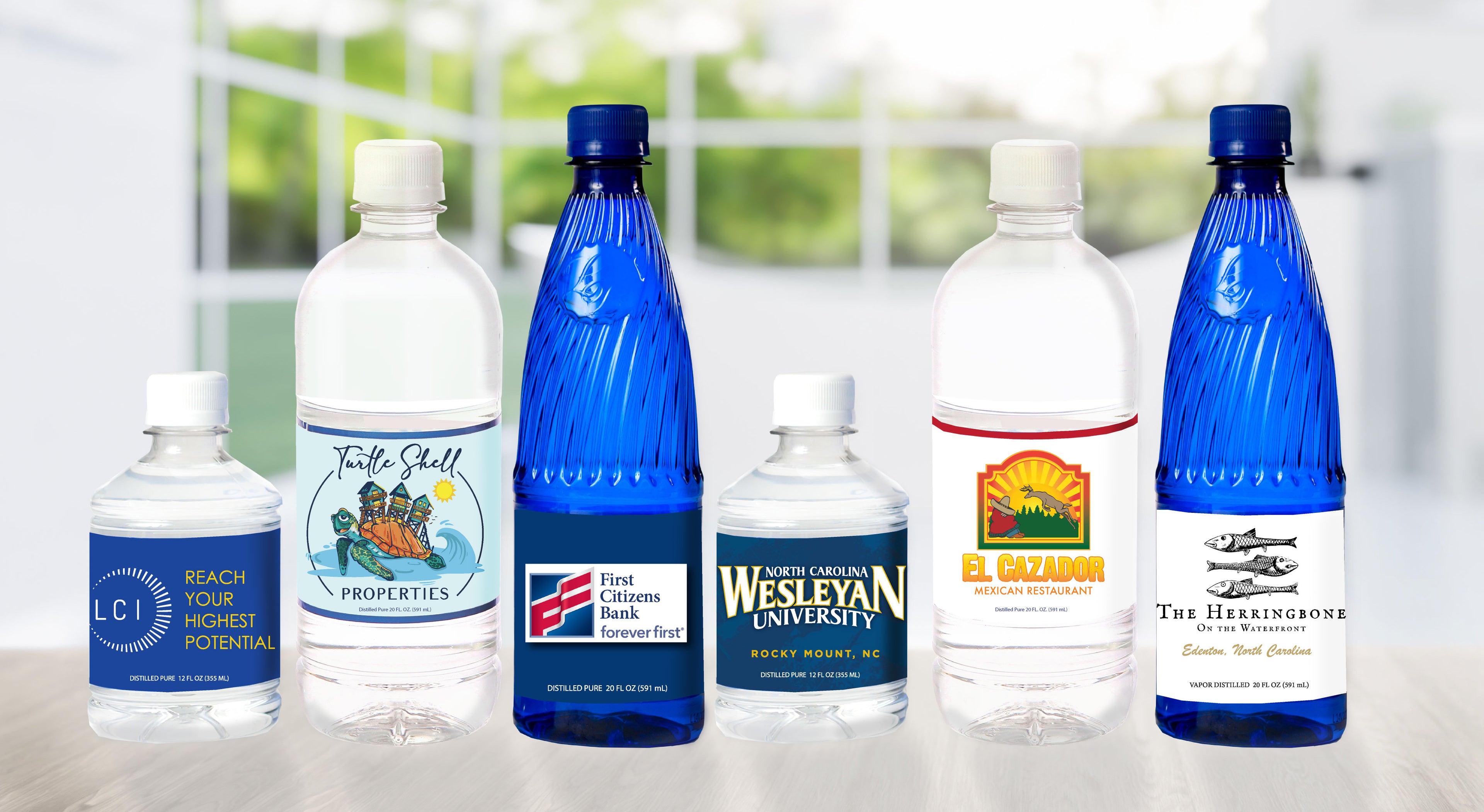 Select your bottle and quantity and add to cart. If you are a new customer, also select the Design Label icon and upload your logo for a professional designer to design your bottled water label. Enter any other information you would like on the label.
