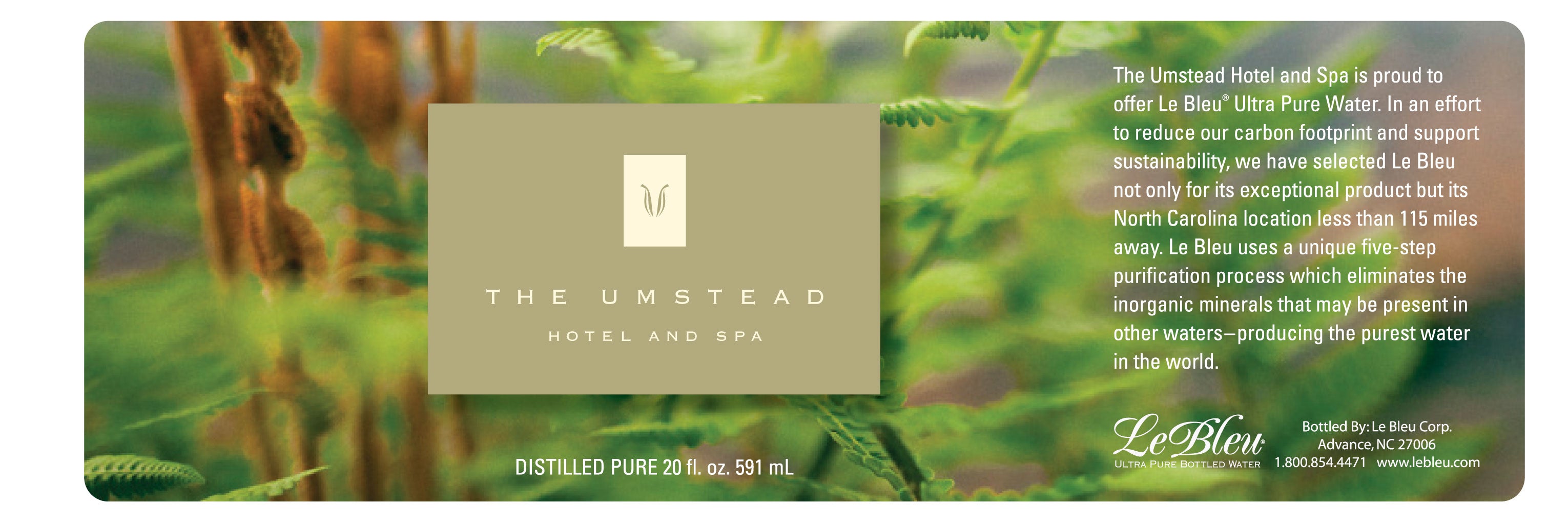 Le Bleu’s award-winning, Ultra Pure Water is the result of our “five steps beyond Mother Nature” process, which eliminates the inorganic minerals, chemicals, and contaminants that may be found in other water. This process creates uniquely pure water, free of contaminants, perfectly balanced and fresh tasting.